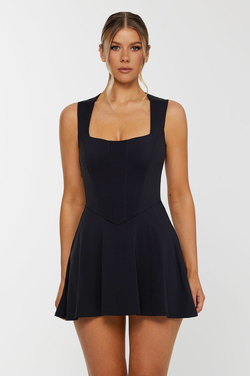 Material feels amazing, love the shape of the shorts underneath with a bit of the back showing. The torso is a wee long if your short but still works!